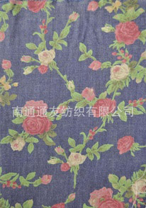 紅花綠葉雕印牛仔布